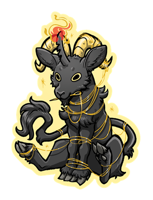 (The) Starmender serves as our mascot and logo (logoat). She was once an regular little goat who fell through a wormhole and emerged changed; transformed into a cosmic, god-like being. She now travels the stars, collecting stories, trinkets and art. Perhaps she'll share some of her findings with you?